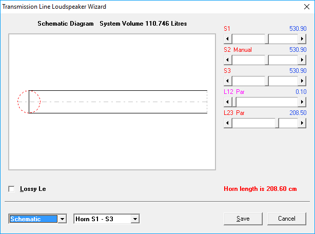 Generating a good-looking simulation of a tapped horn in Hornresp is not that difficult to do. Converting the simulation into an actual build is where the real challenge lies. Usually it's a lot easier to just start with a known tapped horn "fold" (basically a tapped horn folded into the form of a box) and modifying it to work with the driver that you want to use. Under the "Horn Folding" section of this website, I've provided several workbooks that describe some of the more common tapped horn folds - these workbooks can be used to modify the dimensions of the box and the location of the internal panels to produce a tapped horn that will get the best results from the driver that want to use. The workbooks will automatically generated the required parameters for a Hornresp simulation of the tapped horn that is illustrated in the workbook. Tapped horn resources and projects on the internet: |